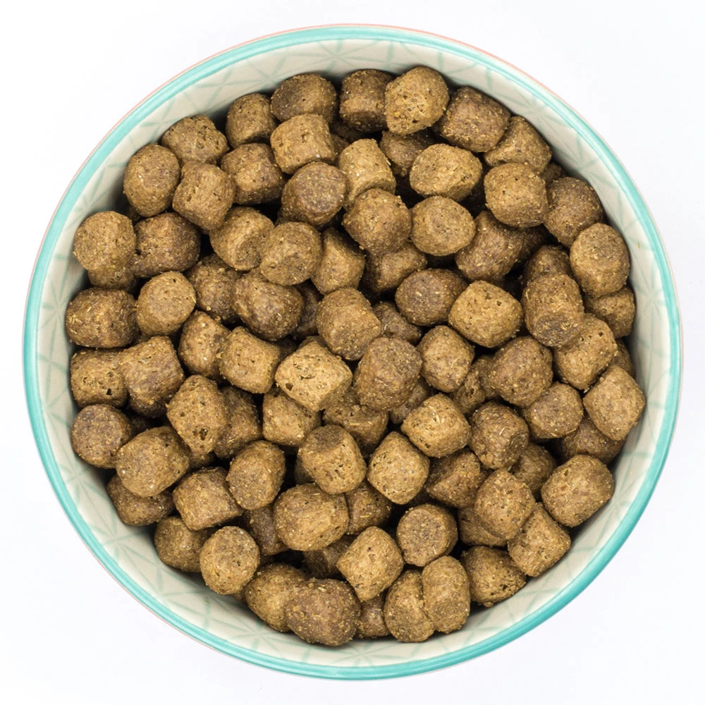 Chicken Meal (30%); Brown Rice (22%); White Rice (22%); Oats; Peas; Chicken Oil; Sunflower Oil; Seaweed; Minerals.